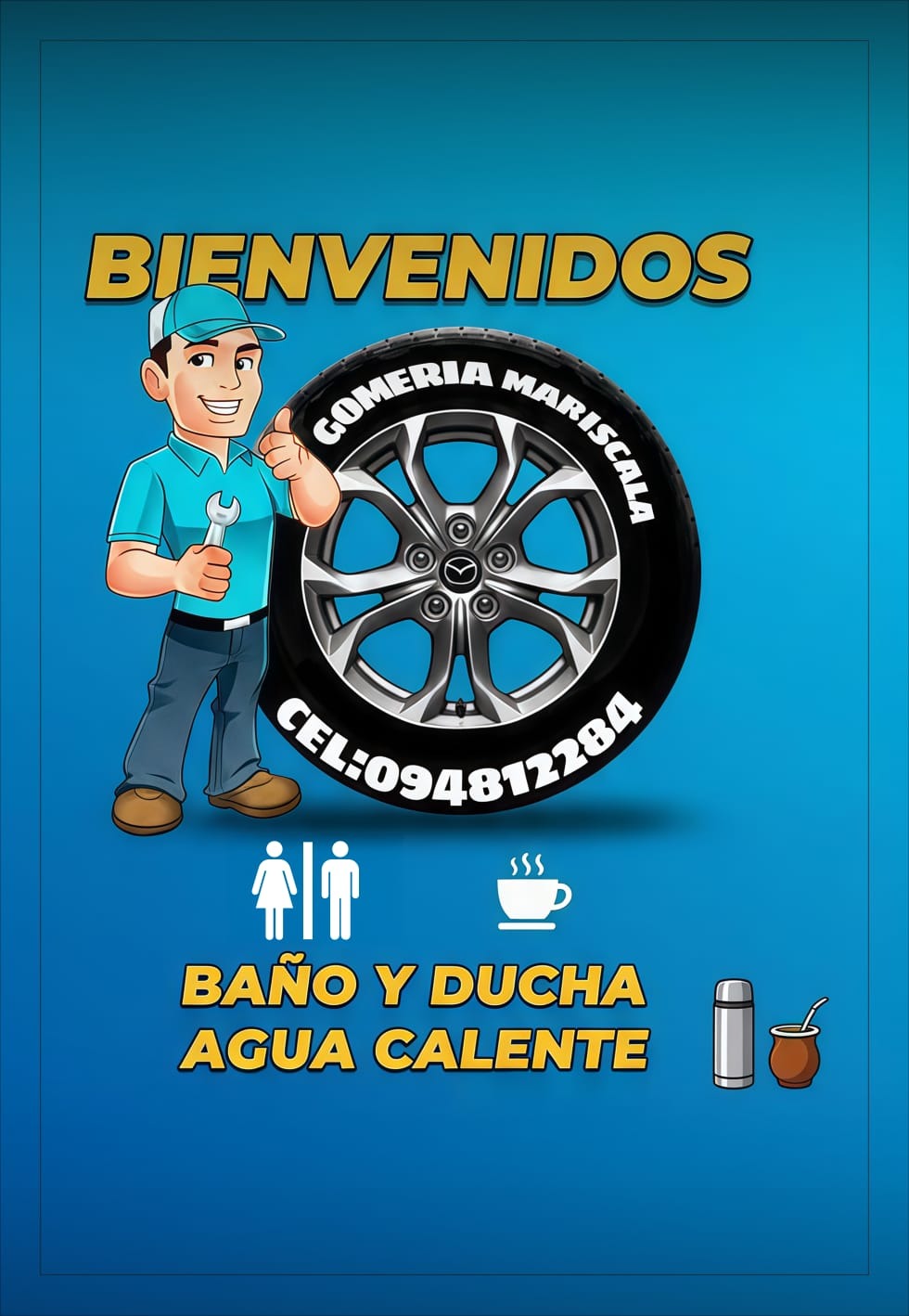 Nuestro servicio de gomería incluye, baño y ducha, agua caliente para el mate.