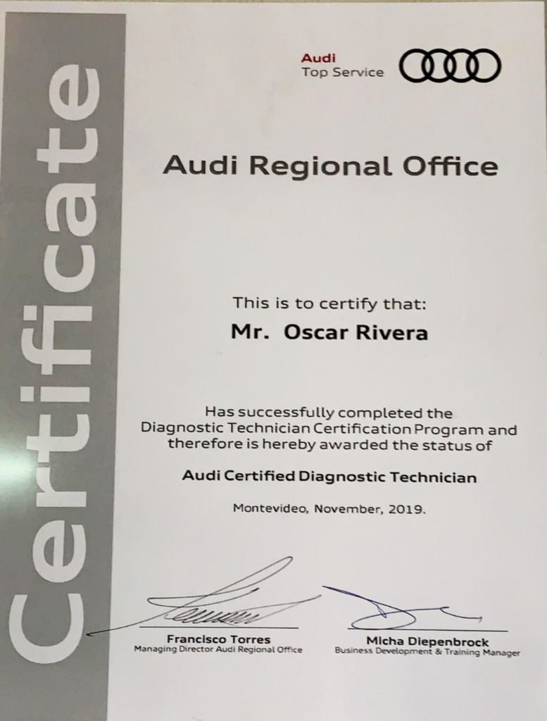 Técnico de diagnóstico certificado por AUDI